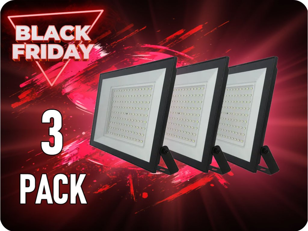 ✾ LED reflektor 100W, 8150lm, fekete/3-PACK!