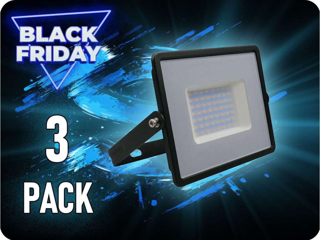 ✾ LED reflektor 50W, 4300lm, fekete/3-PACK!