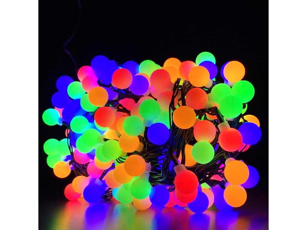 LED 2 az 1-ben kültéri karácsonyi lánc, gömbök, távirányító, 200LED, RGB+W, 8 funkció, 1+1 GRATIS! [1V09-RGB]