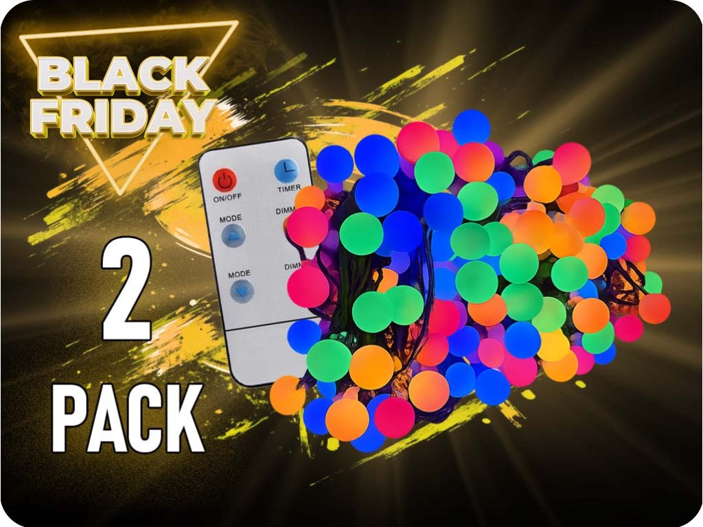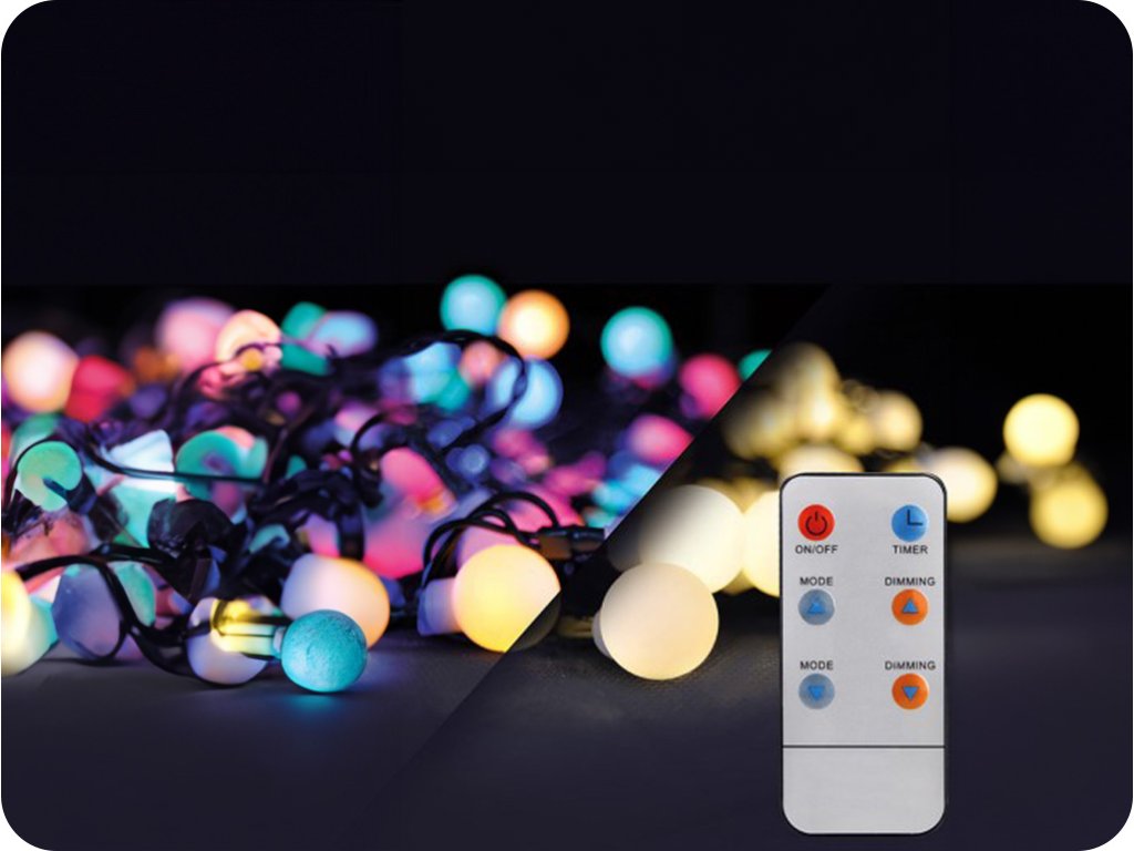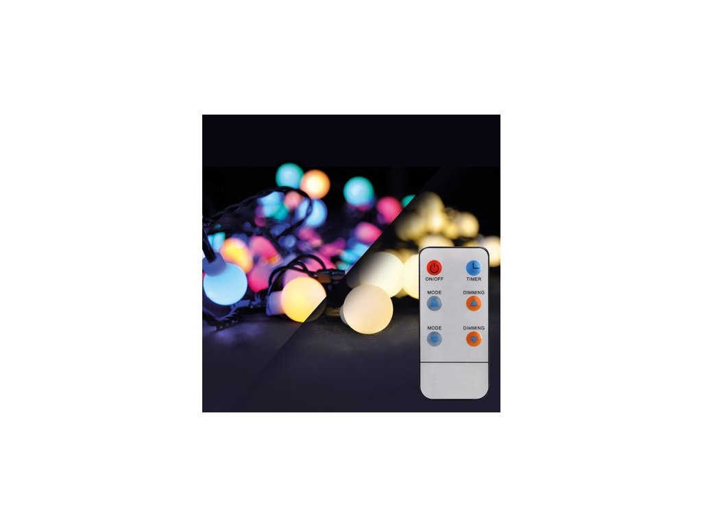 ✾ Solight LED 2in1 kültéri karácsonyi lánc, labdák, távirányító, 200LED, RGB+W, 20m+5m, 8 funkció, IP44/2-PACK! [1V09-RGB]