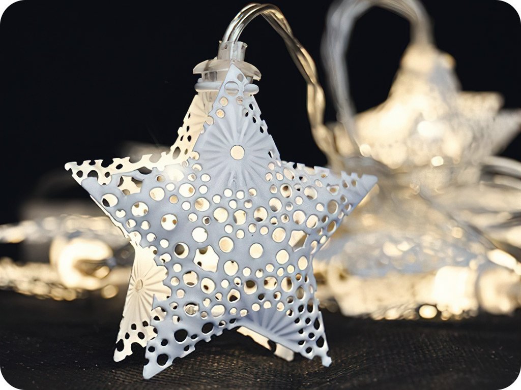 LED karácsonyi csillaglánc, fém, fehér, 10LED, 1+1 GRATIS! [1V224]