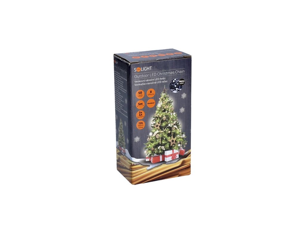 LED kültéri karácsonyi lánc, 50LED, 5m, 3m vezeték, 8 funkció, IP44, 1+1 GRATIS! [1V53-W]