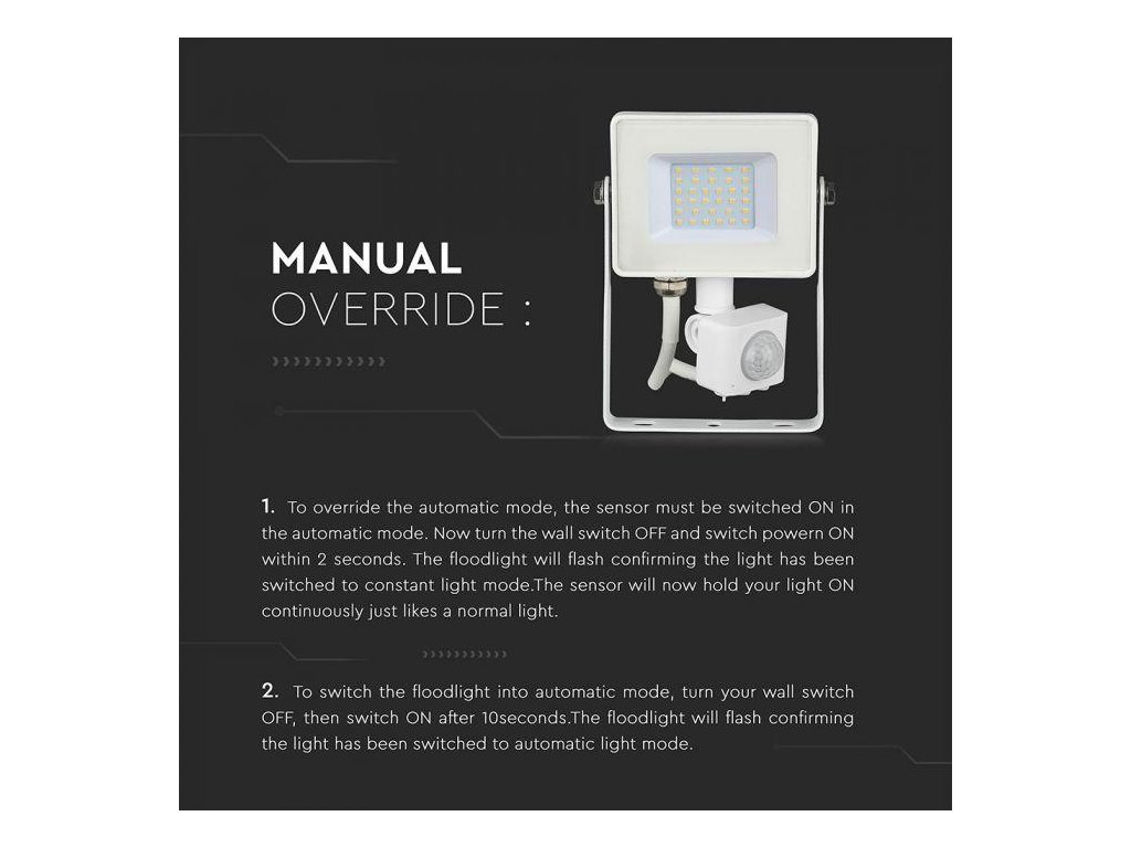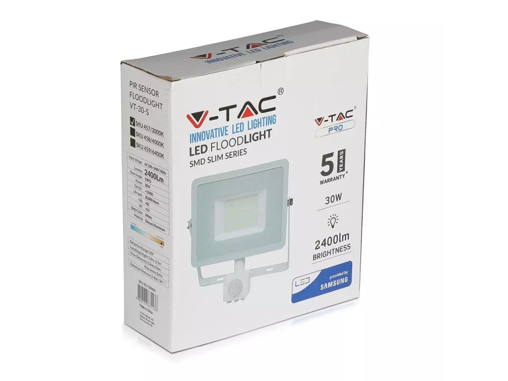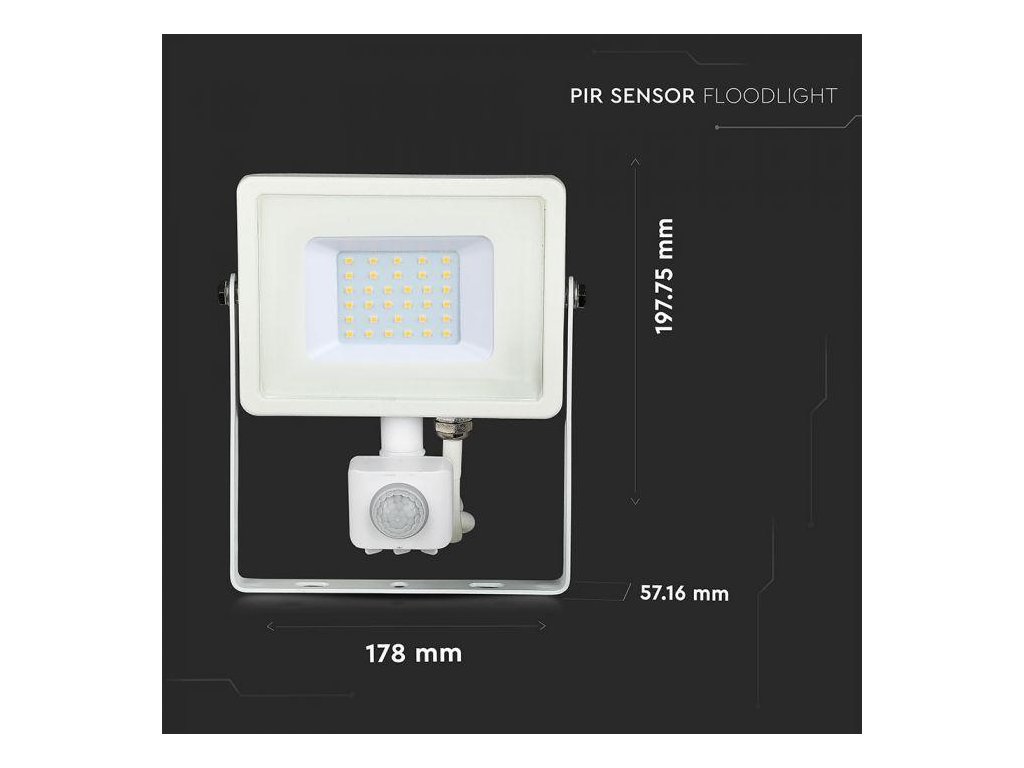 30W LED reflektor SMD érzékelővel, fehér, SAMSUNG chip, 1+1 gratis!