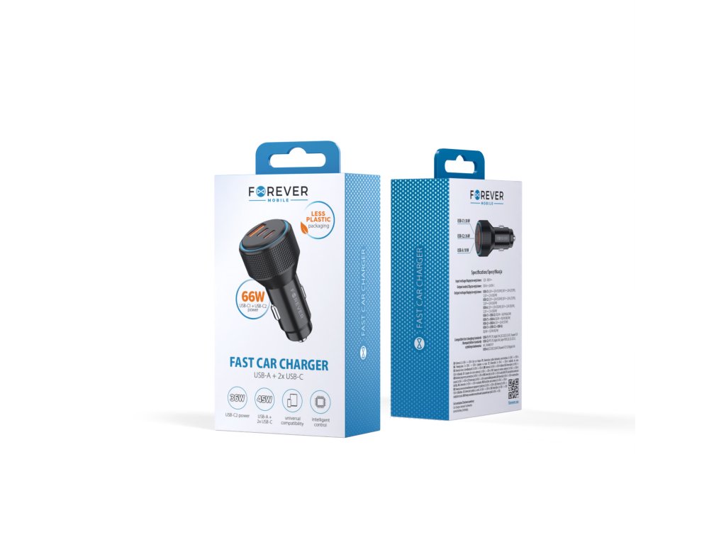 Autós töltő adapter PD QC 1x USB-A, 2x USB-C, 66W, fekete [GSM194957]
