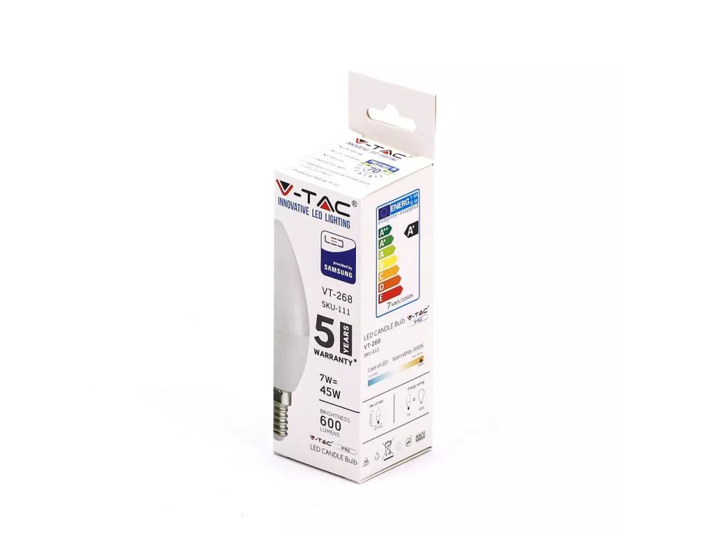 E14 LED izzó 7W, 600Lm, SAMSUNG chip, C37, 4+6 gratis!