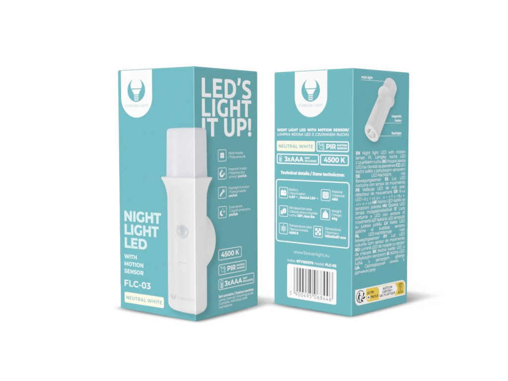 Forever light LED szekrény lámpa 3xAAA érzékelővel, 4500K [RTV100370]