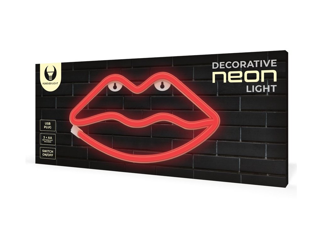 Forever Light Neon LED dekoráció - piros ajkak, 3xAA/USB [RTV100207]