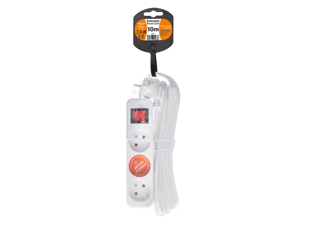 HOSSZABBÍTÓ KÁBEL 3 ALJZAT, 10M, KAPCSOLÓ, FEHÉR [PP16]