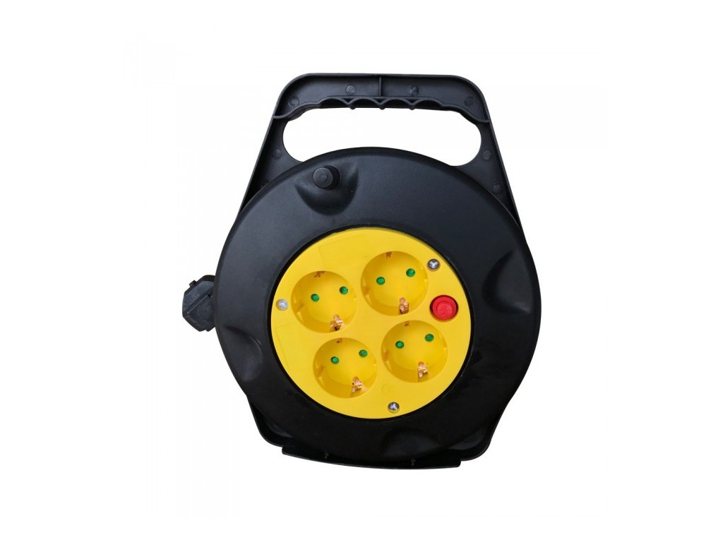 Hosszabbító kábel dobon, 4 aljzat, 10m, 16A, 3G1.5mm2