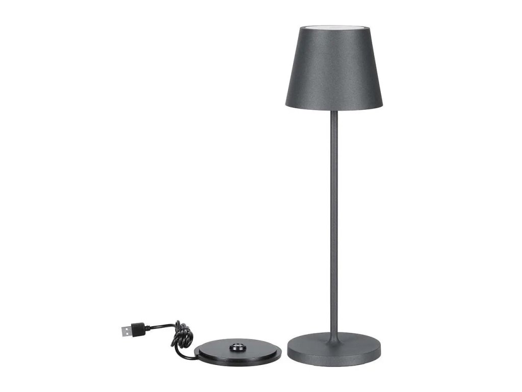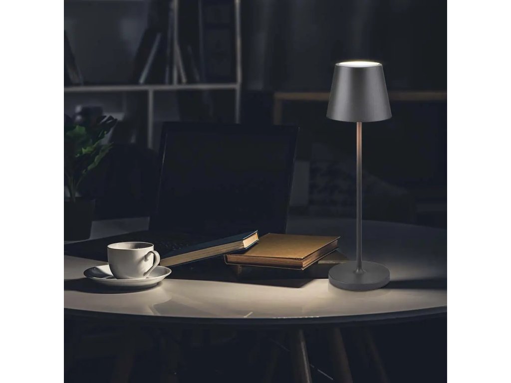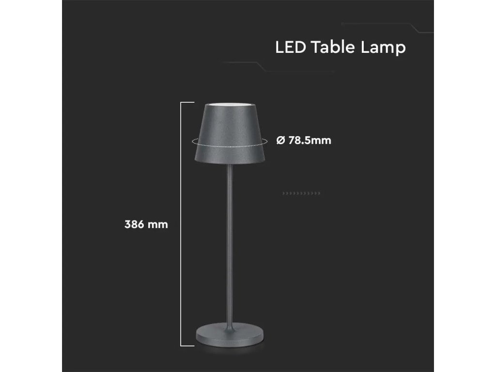 LED ASZTALI LÁMPA 2W, 200lm, 3000K, ÚJRATÖLTHETŐ, 4400mAh töltővel. talapzattal, SZÜRKE, IP54