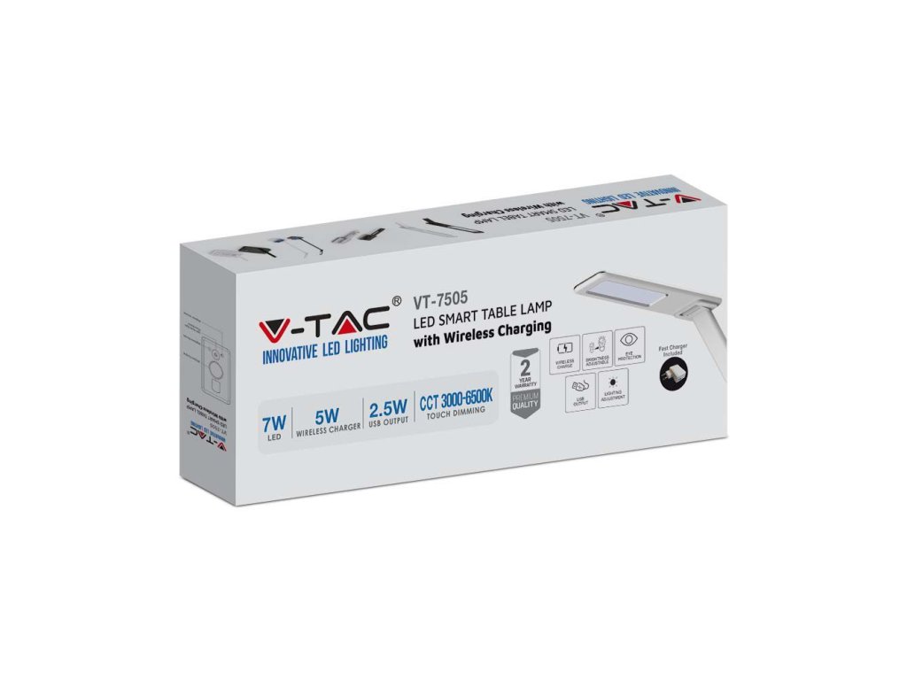 LED asztali lámpa 7W, 560lm, szabályozható, CCT +, vezeték nélküli töltés, fehér