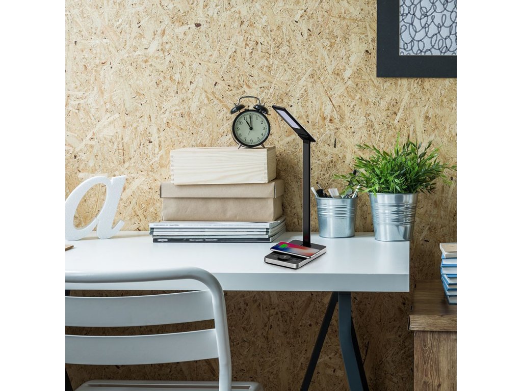 LED asztali lámpa 7W, 560lm, szabályozható, CCT +, vezeték nélküli töltés, fekete