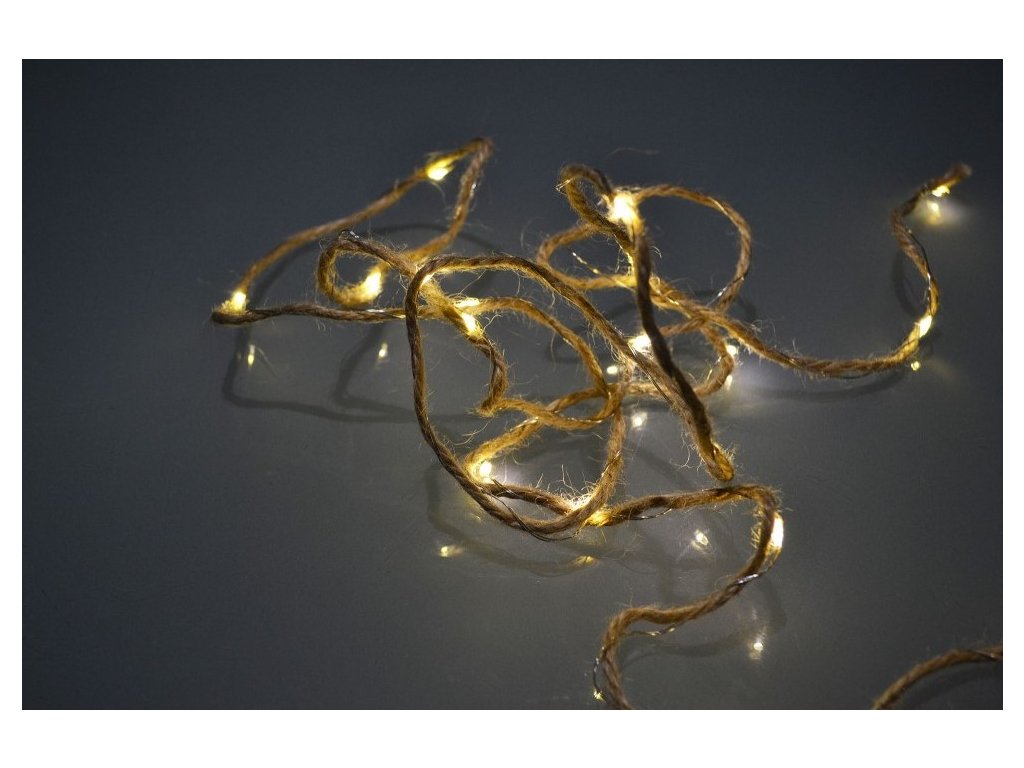 LED dekoratív kötélfüzér 2m, 20LED, 2xAA, meleg fehér, funkció nélkül, ezüst réz [X012011110]