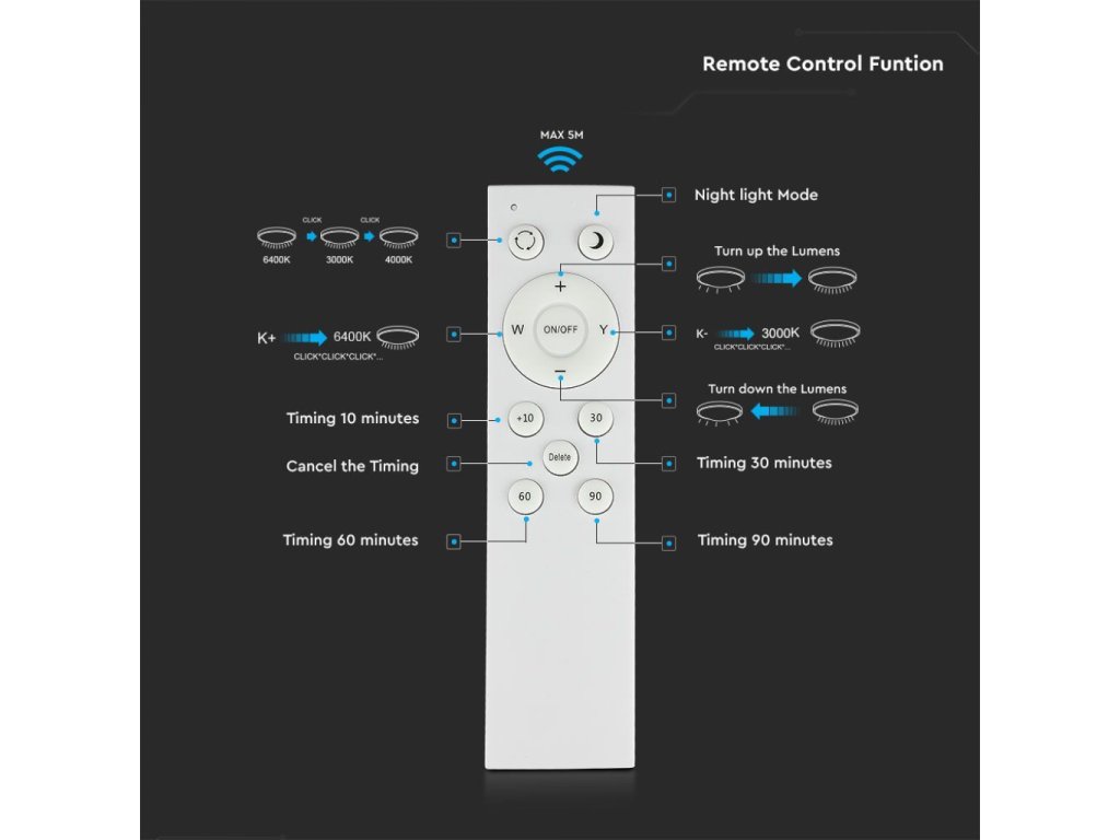 - Távirányító mellékelve - a fény színének szabályozása meleg fehértől hideg fehérig, éjszakai mód, időzítő és fényerő-szabályozás