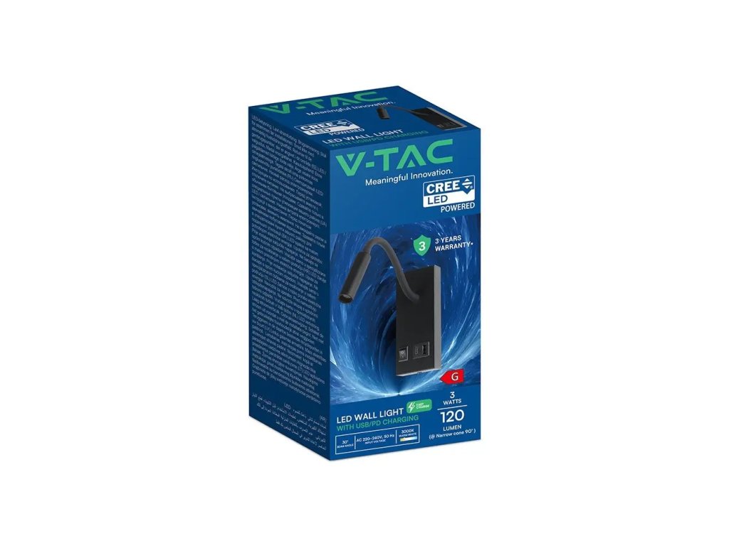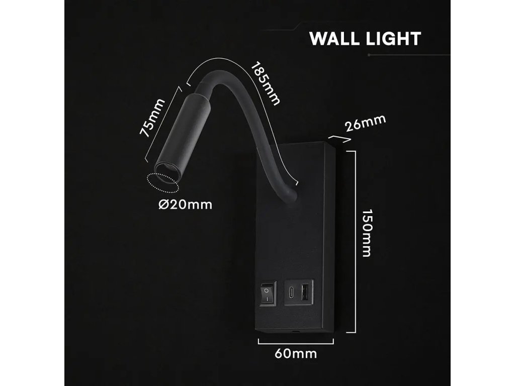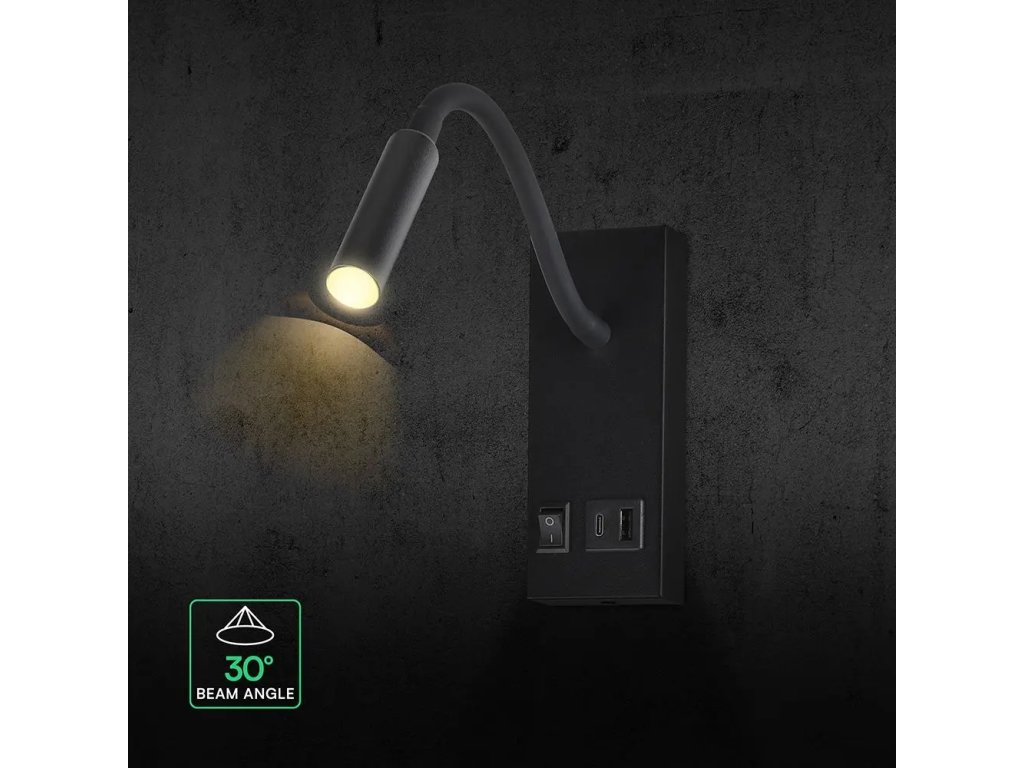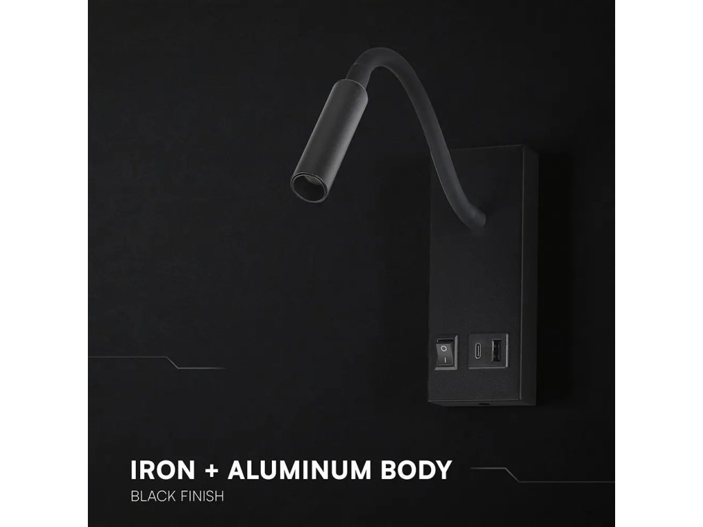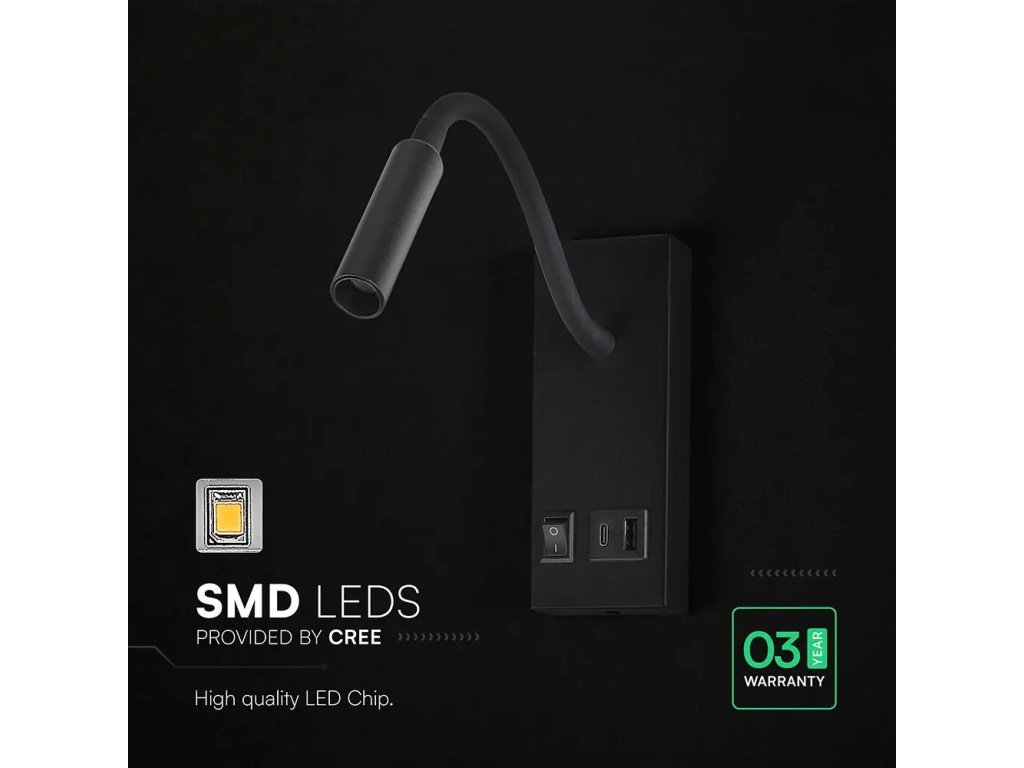 LED éjjeli lámpa 3W, 120lm, CREE CHIP, USB-C + USB, fekete