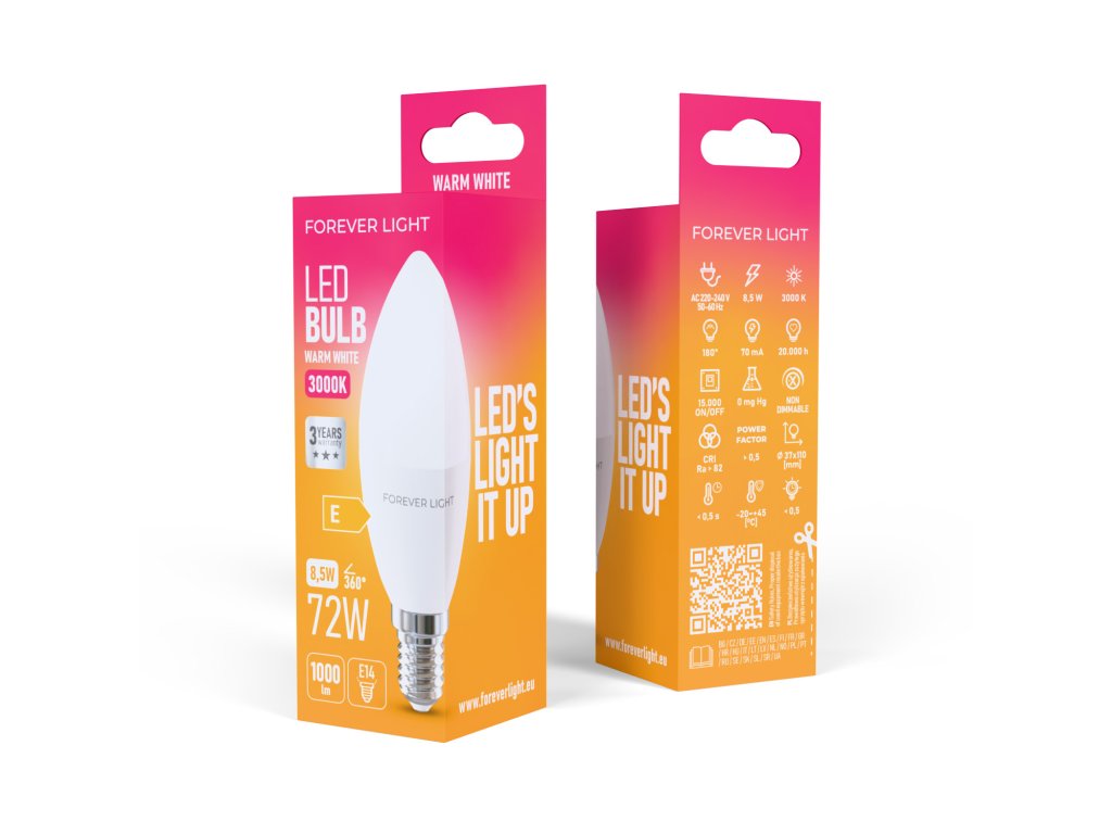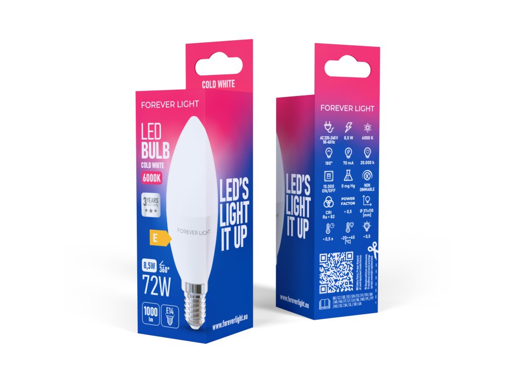 LED izzó E14 8,5W, 1000lm, C37, gyertya, 2+2 gratis!