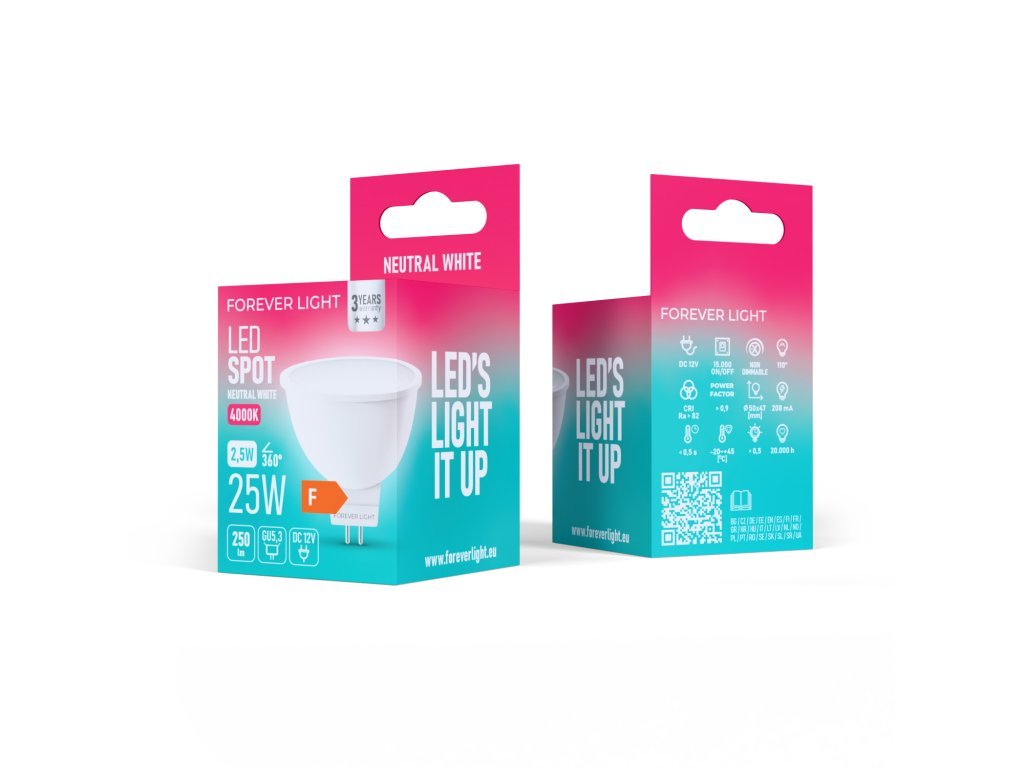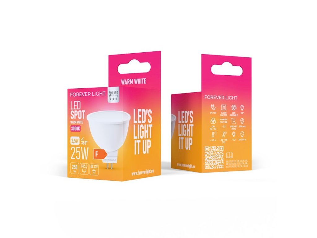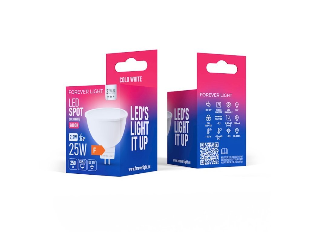 LED izzó GU5.3 2.5W, 250lm, 12V, MR16