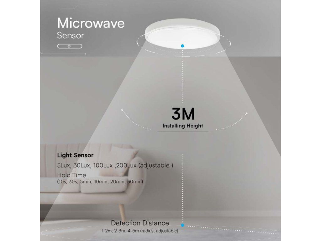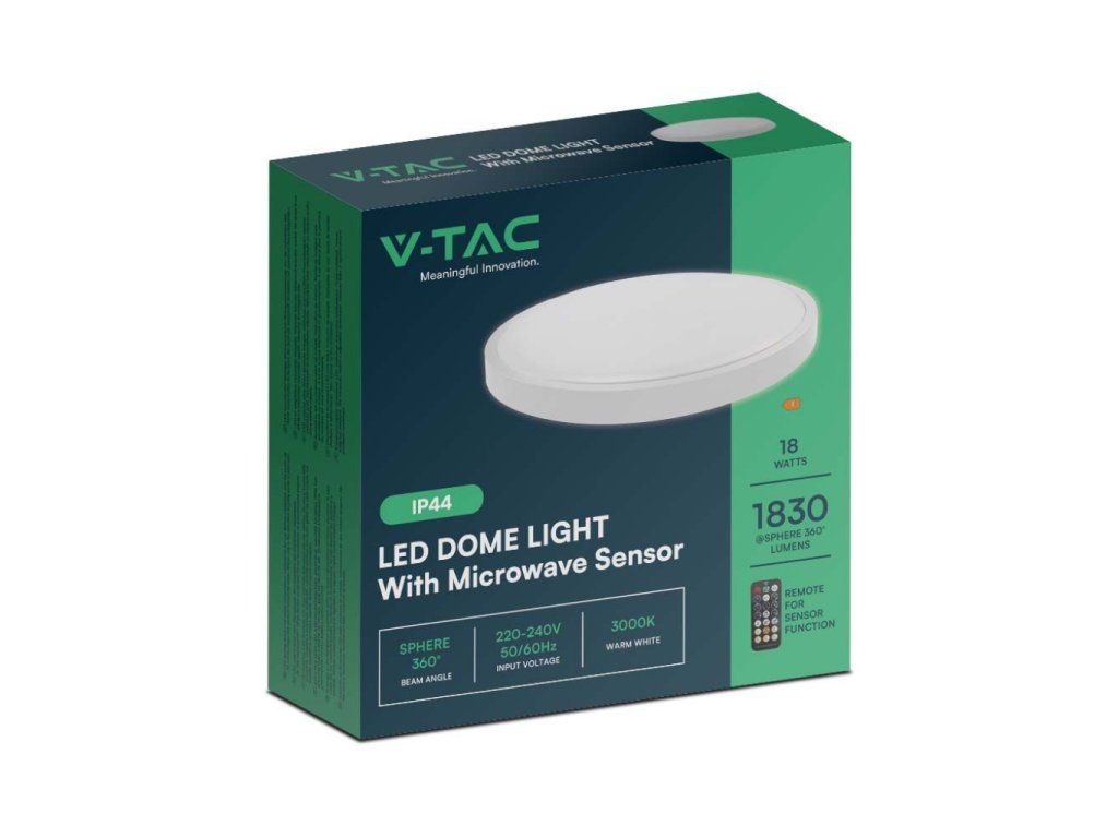 LED lámpa mikrohullámú sütővel és fényérzékelővel 18W, 1830lm, IP44, 4000K, kerek, fehér keret/2-PACK!