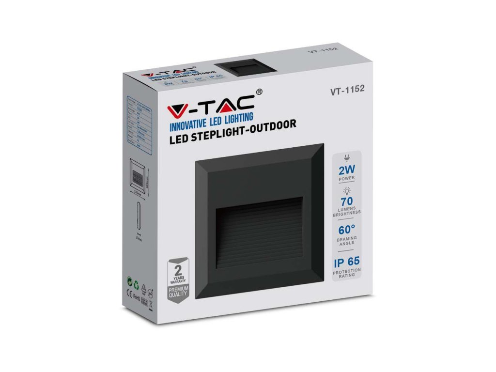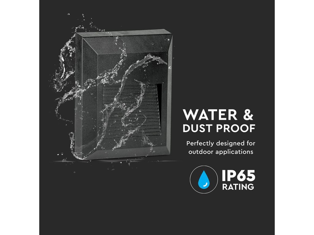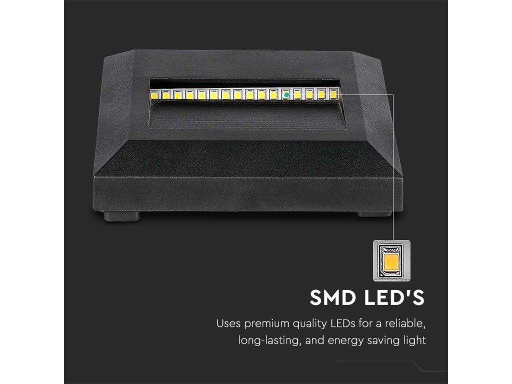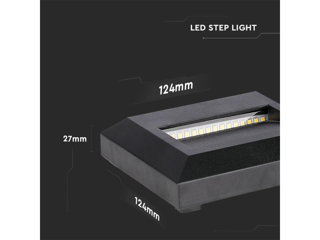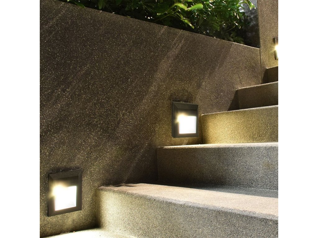 LED lépcsőlámpa, 2W, 80lm, IP65, négyzet alakú, fekete