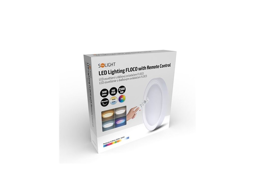 LED mennyezeti lámpa távirányítóval FLOCO 30W+6W, RGB, 2100lm, 40cm, fehér [WO8015]