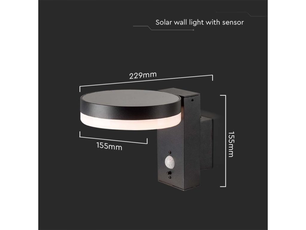 LED napelemes fali lámpa érzékelővel 5,5W, 220lm, 2000mAh, 3000K, IP54