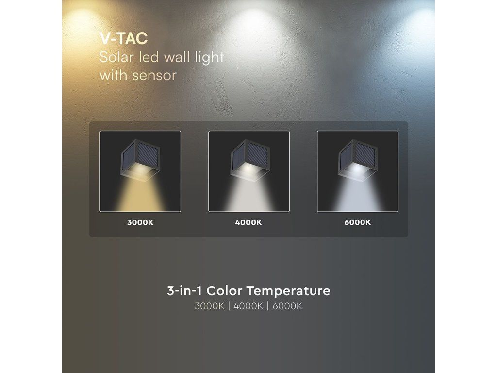 LED napelemes fali lámpa PIR érzékelővel 2,25 W, 900 lm, CCT, IP65