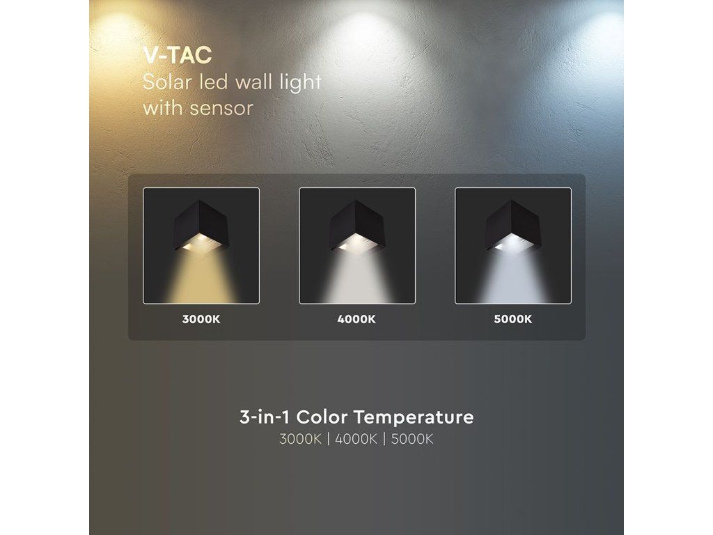 LED napelemes fali lámpa PIR érzékelővel 9W, 800lm, CCT, fekete, 1+1 gratis!