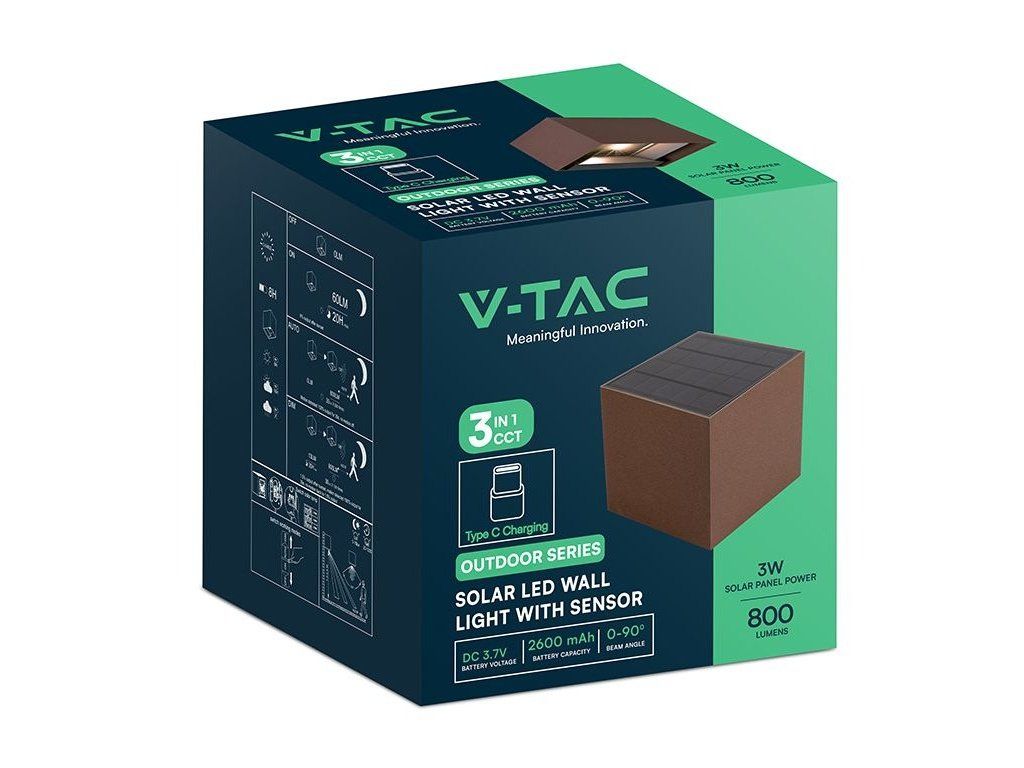 LED napelemes fali lámpa PIR érzékelővel 9W, 800lm, CCT, IP65, barna-piros CORTEN