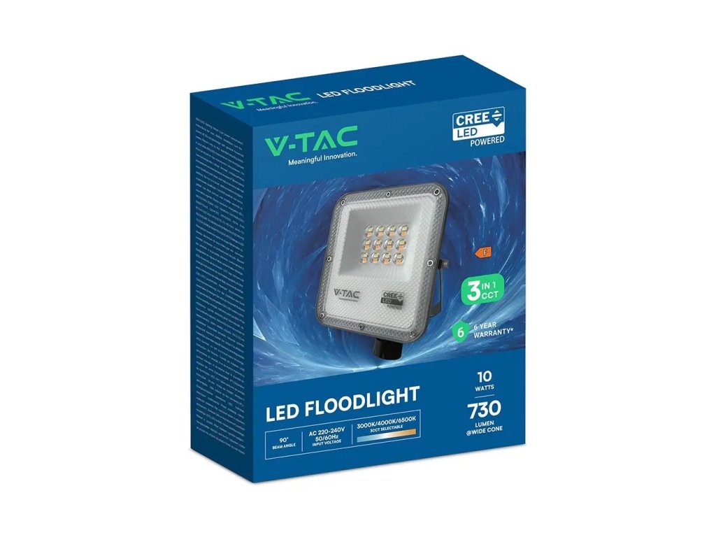 LED reflektor 10W, 730lm, CCT színváltás 3000K/4000K/6500K, CREE CHIP, fekete
