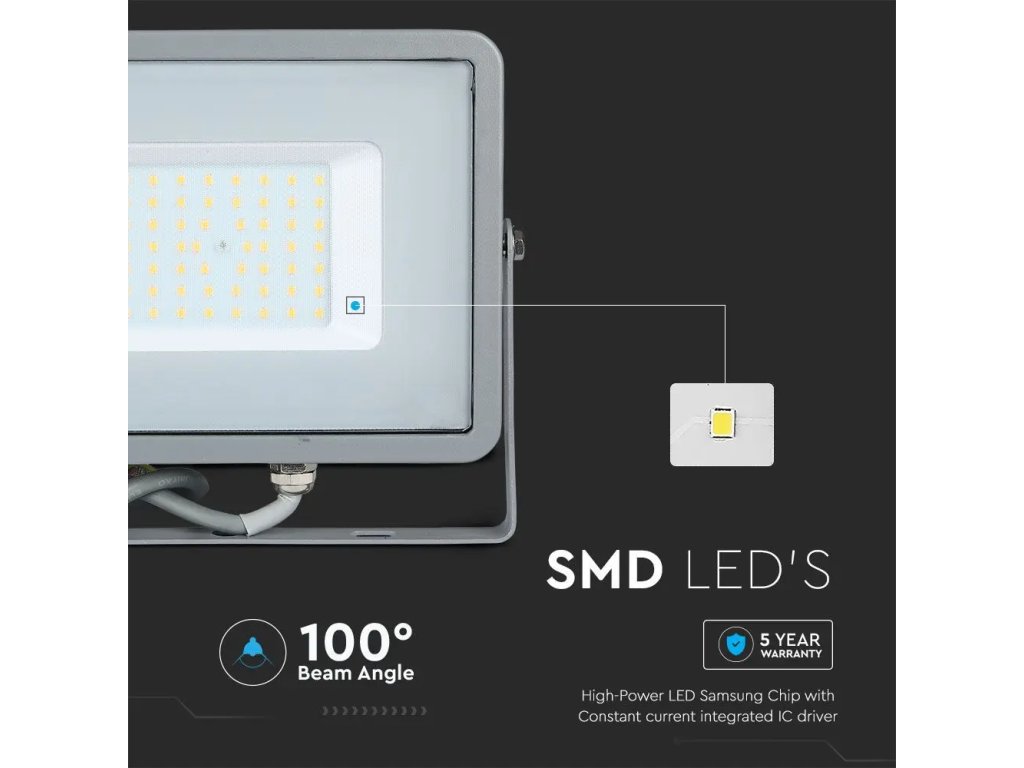 LED reflektor 50W, 4000lm, szürke, SAMSUNG chip