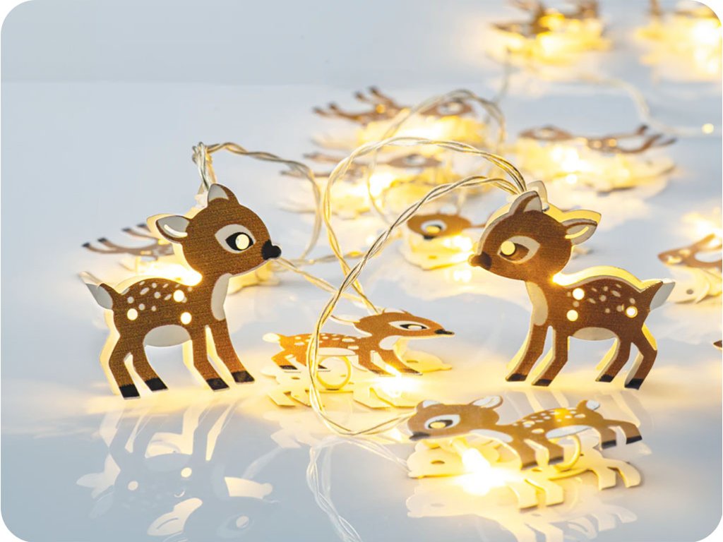 LED lánc Bambi, fém, 1.35m, 10LED, 3xAA, meleg fehér, funkció nélküli, átlátszó kábel, átlátszó kábel [XMDEER102A]