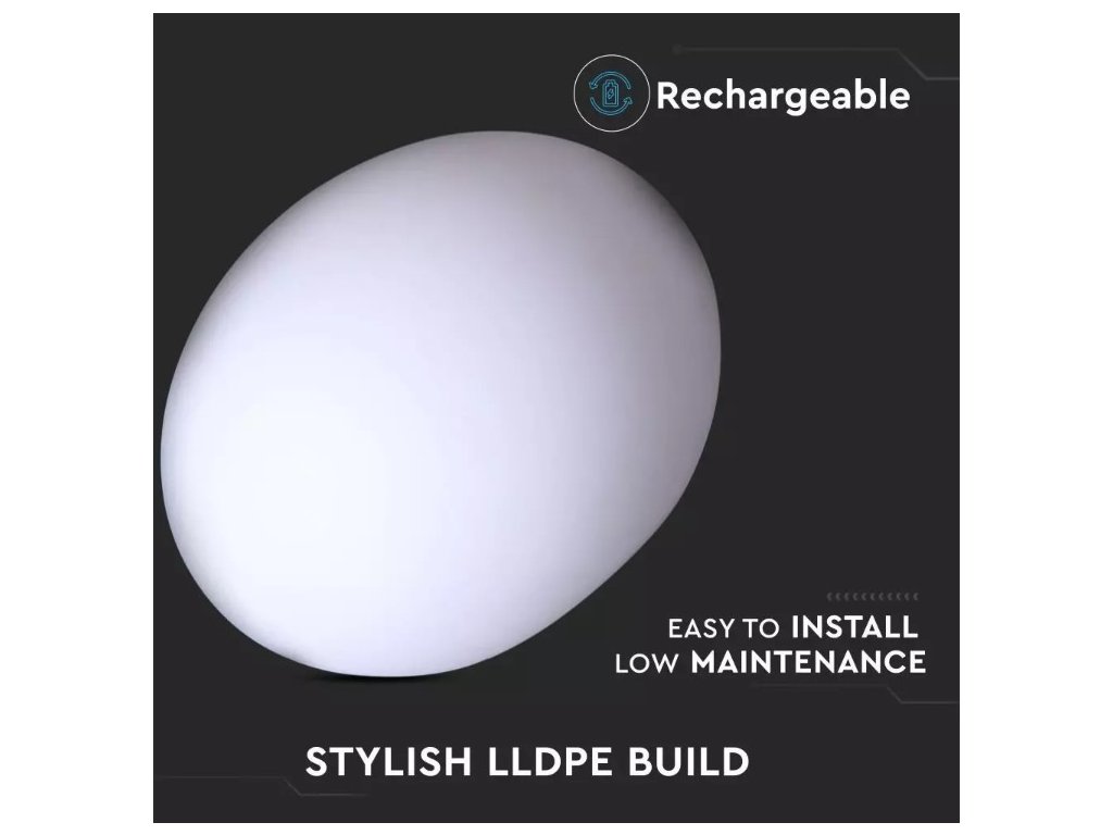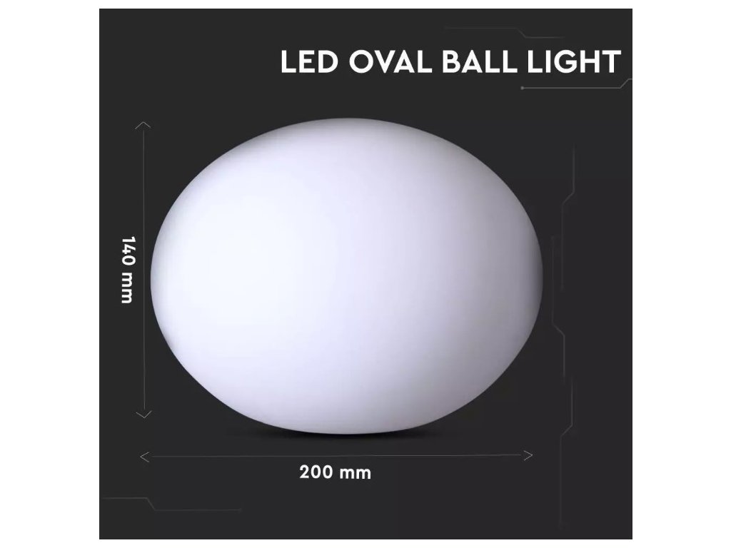 LED RGB lámpatest BALL 20x14 cm, IP67, műanyag, újratölthető