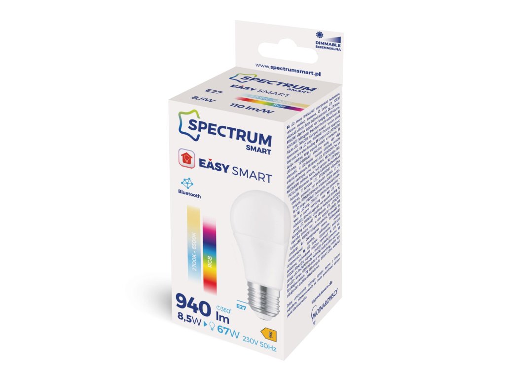 LED Smart izzó RGB+CCT 8,5W, 940lm [WOJ+14628]