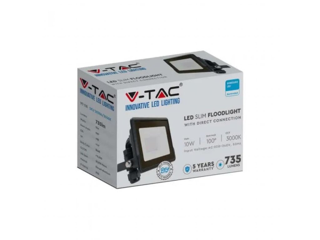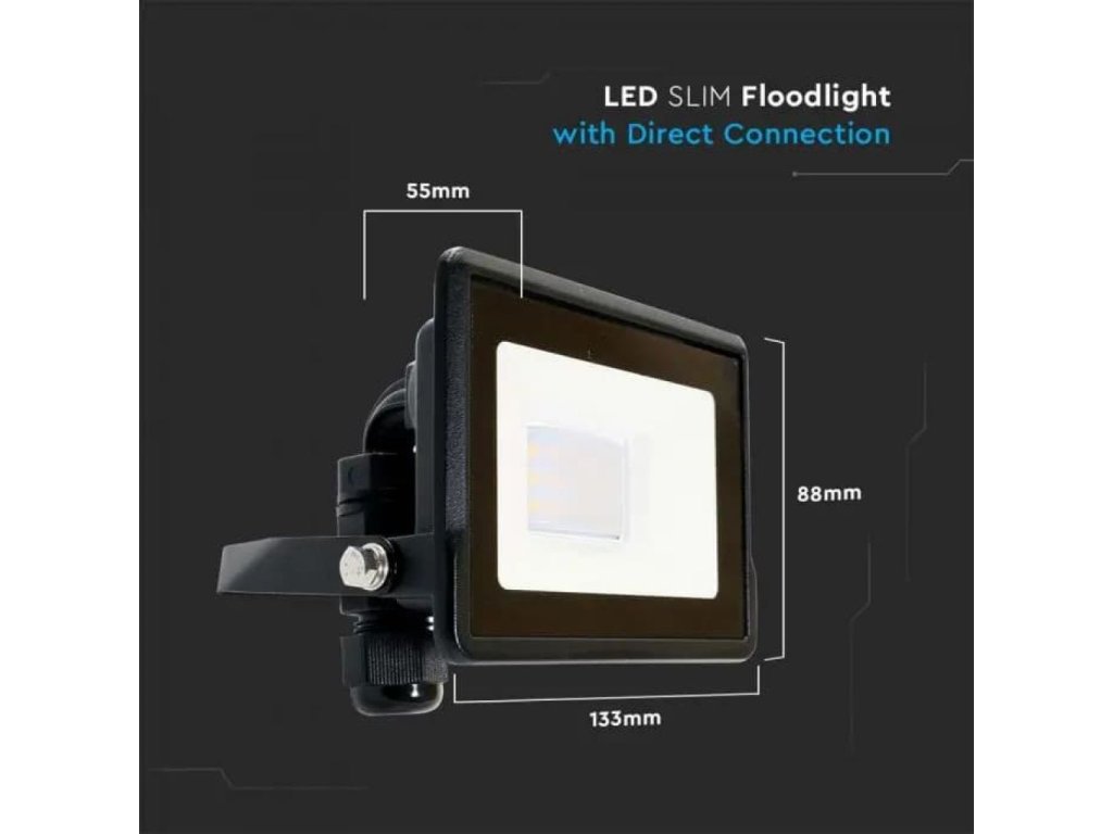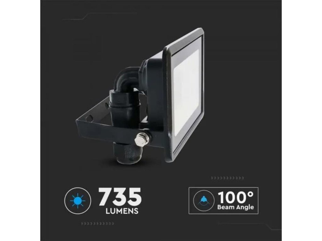 LED spotlámpa közvetlen csatlakozással 10W, 735lm, 100°, SAMSUNG chip, IP65, fekete