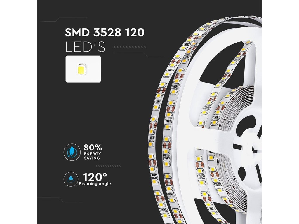 Led szalag belső térhez 8W/m, 800lm/m, 120LED/SMD 3528, 12V, 5m + 5m gratis!
