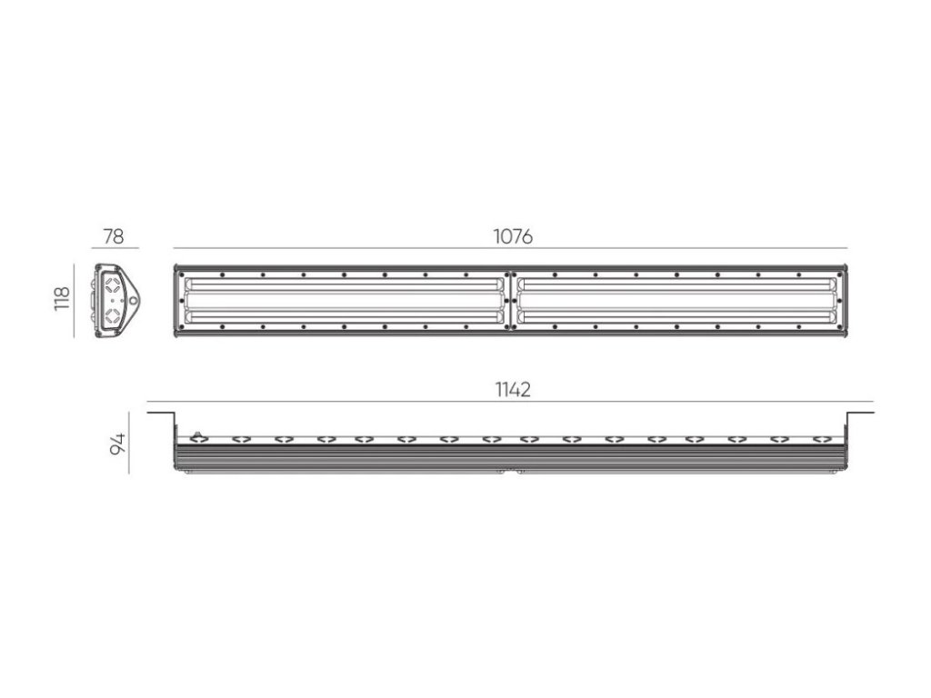 - az aszimmetrikus 120 x 60°-os lencse nagy területek egyenletes megvilágítását biztosítja, miközben minimalizálja a fényszórást, jól működik zord környezetben, tartós és energiahatékony, növeli a munka kényelmét és csökkenti a szemfáradtságot