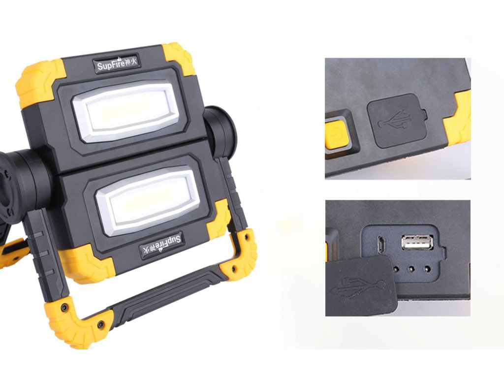 Újratölthető hordozható LED reflektor Supfire G7, 2x10W, 5000mAh, 2xUSB, 600lm/1000lm