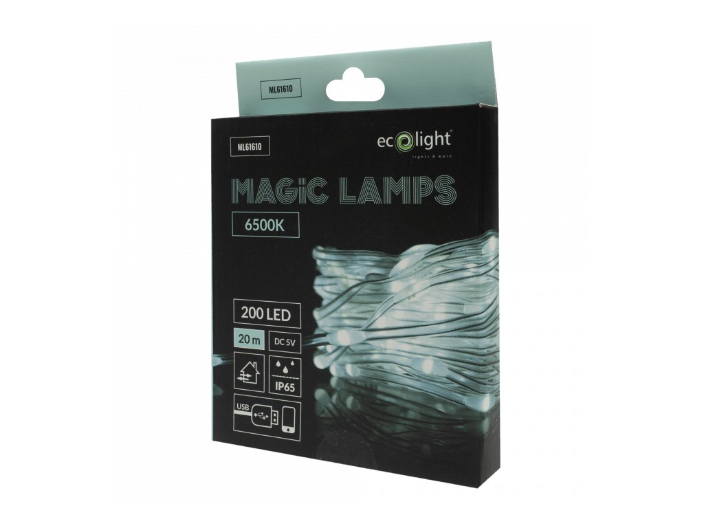 - IP65 lánc – kültéri dekorációhoz; IP20 védelemmel ellátott USB csatlakozó száraz környezetben való használatra.