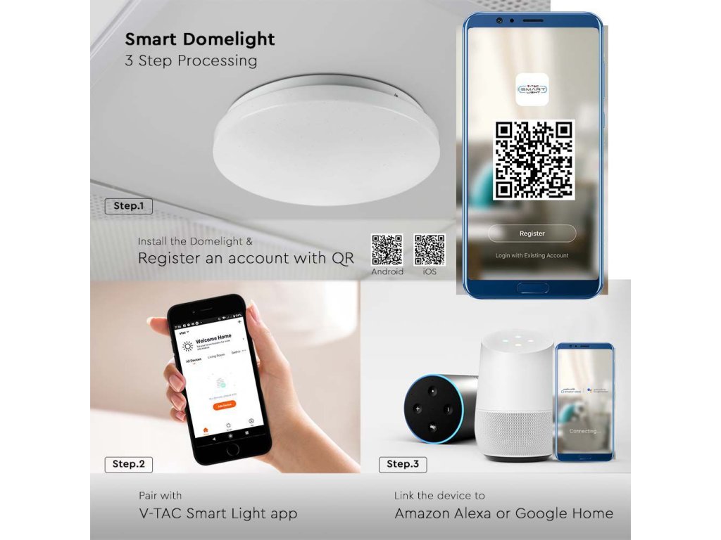 SMART LED mennyezeti lámpa RGB+CCT, 24W, 2400lm, IP20, Amazon Alexa, Google Home.