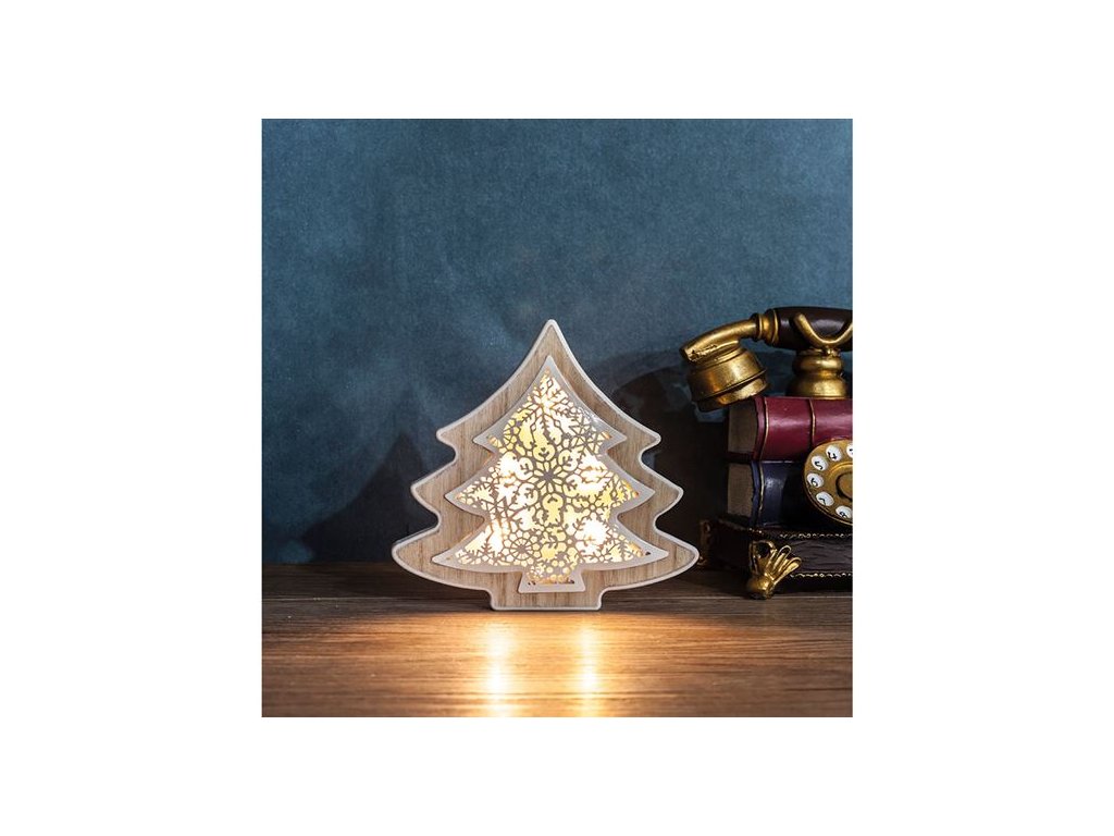 Solight LED karácsonyfa, fa dekorban 6LED meleg fehér 2xAAA (1V45-T)