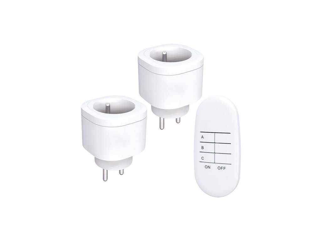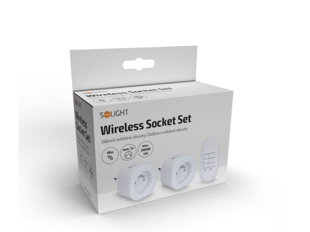 Solight távirányítós aljzatkészlet 2+1, 2 aljzat, 1 távirányító, tanulási kóddal [DY08]