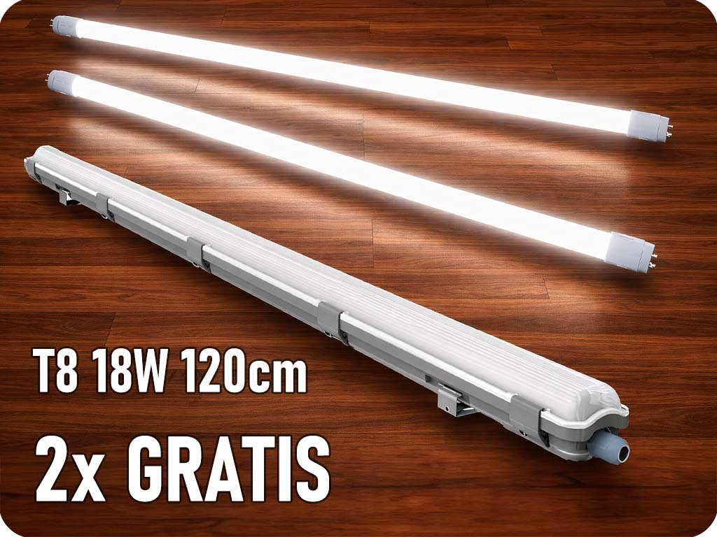 Tartó LED csövekhez (2x120cm) + 2x LED fénycső T8 gratis!