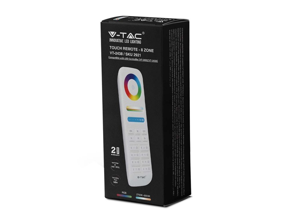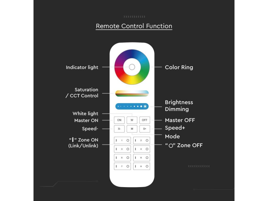 Távirányító 8 zónás RGB/RGBW szalagok (SKU 2912/2913 egységekhez - külön) 2xAAA