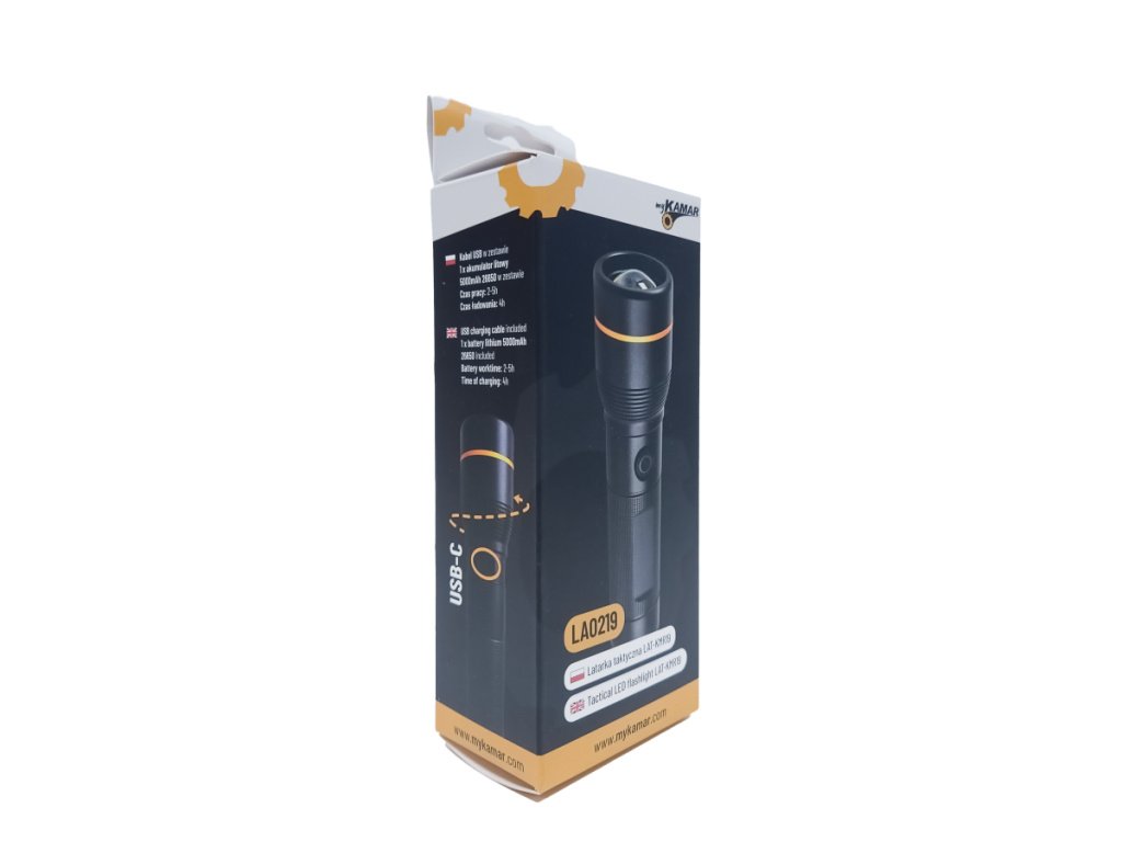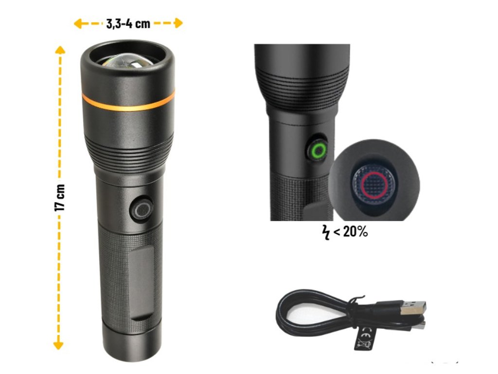 - USB töltőkábel (a csomag része - a fej lecsavarása után a zseblámpa testében található)