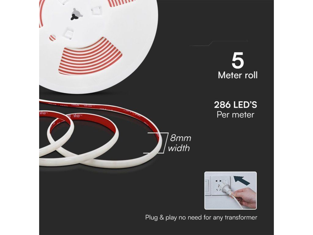 Vízálló LED szalag 230V-hoz, 12W/m, 1150lm/m, 5m-es csomag