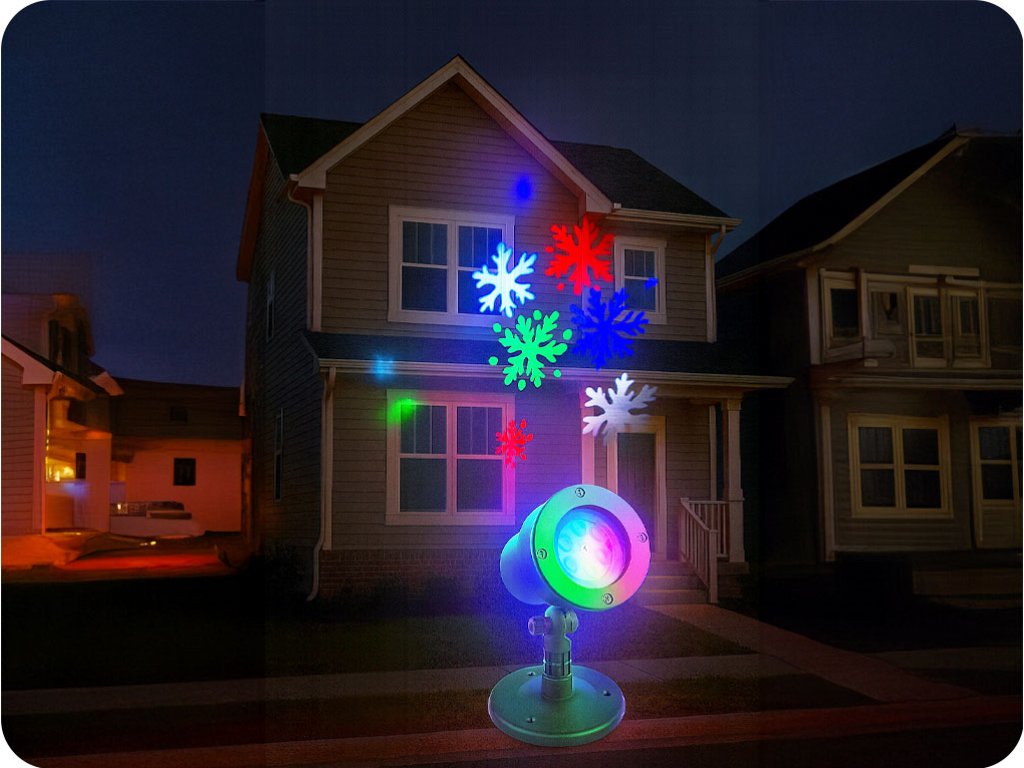 Magas minőségű kerti projektor (LXBN101), amely teljesen megváltoztatja otthona arculatát. Az épület vagy szoba homlokzatán elhelyezett mozgó világítás gyors és egyszerű módja a ház vagy a kert díszítésének.